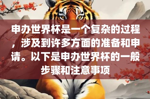 申办世界杯是一个复杂的过程,涉及到许多方面的准备和申请。以下是申办世界杯的一般步骤和注意事项