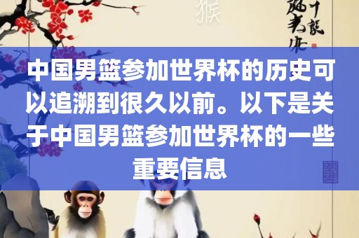 中国男篮参加世界杯的历史可以追溯到很久以前。以下是关于中国男篮参加世界杯的一些重要信息