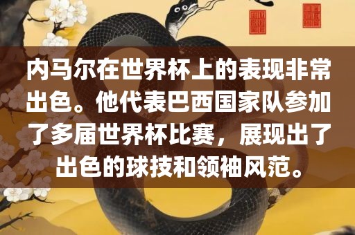 内马尔在世界杯上的表现令人瞩目,作为巴西国家队的重要球员,他多次参加世界杯比赛并展现出卓越的球技和领袖气质。他的表现成为了球队取得好成绩的关键之一。