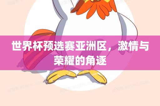 世界杯预选赛亚洲区是亚洲足球的盛宴,是各国队伍争夺世界杯参赛资格的重要舞台,我们看到了激情与荣耀的角逐,看到了亚洲足球的独特魅力,让我们共同期待未来的比赛,共同见证亚洲足球的辉煌时刻。